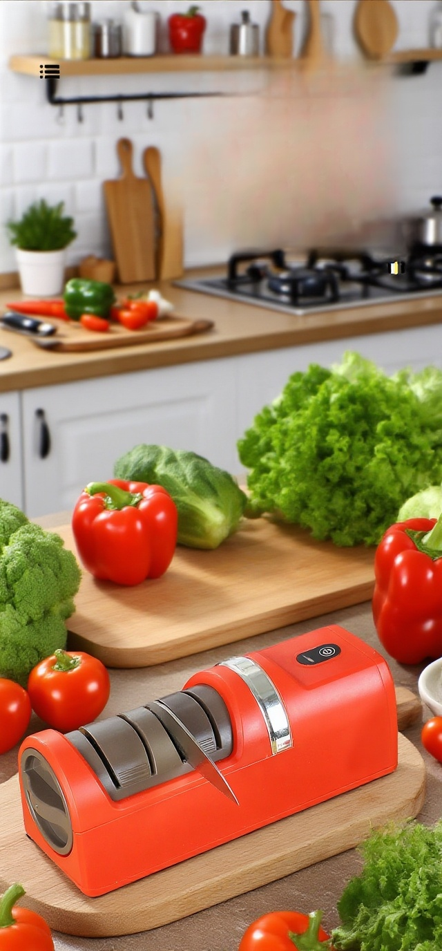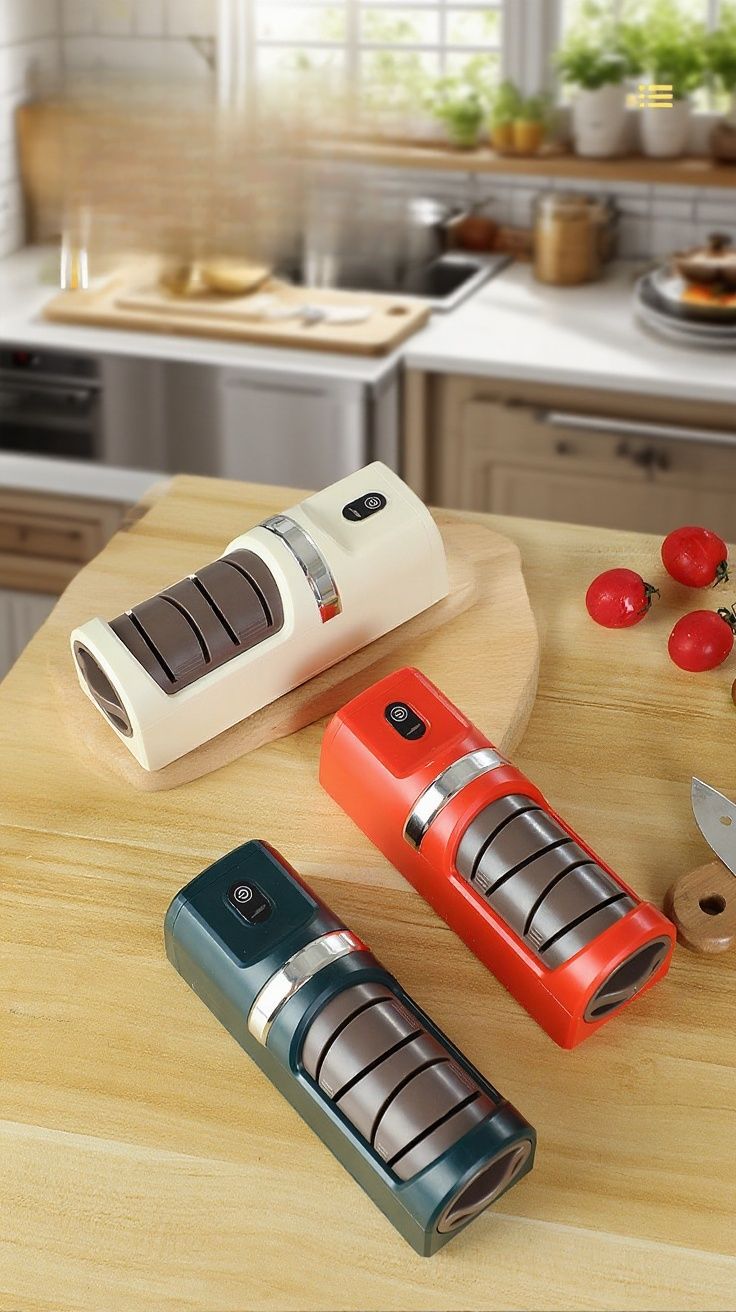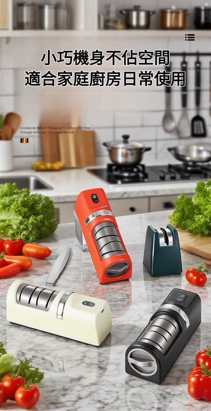 全自動家用磨刀器,操作簡單快速,適用多種刀具,安全穩固設計,節省時間,輕鬆維護刀具鋒利,居家廚房必備工具。