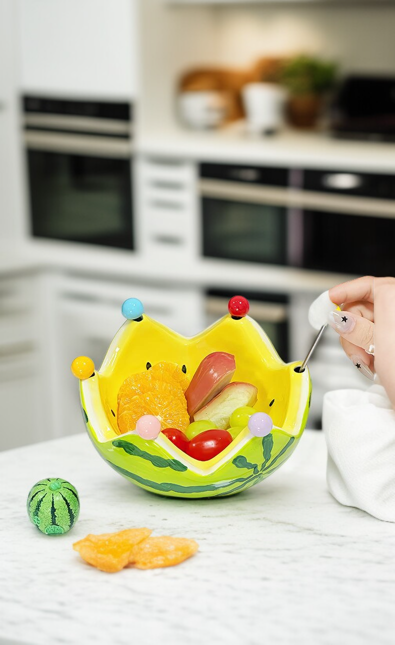 陶瓷西瓜水果盤,質感細膩,設計獨特,適合擺放各式水果,易於清洗,提升餐桌美感,居家必備。